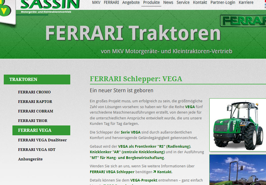 Nach fast zehn Jahren sollte die Webseite neu gestaltet werden. Nur so kann man die hochwertigen Produkte von Ferrari-Traktoren angemessen präsentieren.